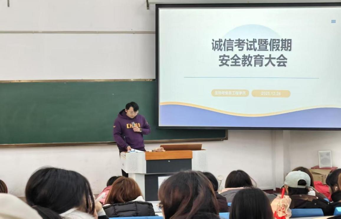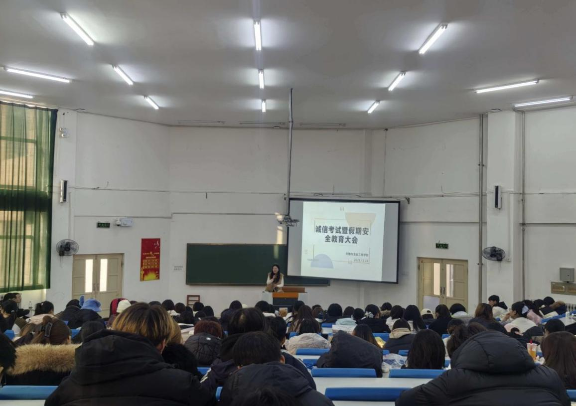 为增强学生诚信意识,营造公平公正的考试氛围,同时做好假期安全防范工作,切实保障学生人身与财产安全,我院于2025年12月24日组织全体学生在阶梯教室2召开了诚信考试暨假期安全教育大会。