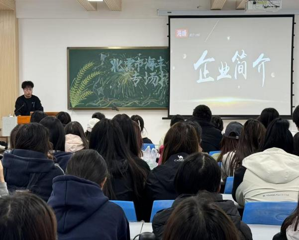 北票市海丰食品有限公司创建于1995年,荣获辽宁省农业产业化重点龙头企业、国家级主食加工示范企业等称号,产品涵盖蛋糕、面包、绿豆糕等十大类480个品种。本次招聘会提供食品研发、质量检测、生产管理等多元化的岗位,契合学院各专业学生的就业需求。通过精彩的宣传片展播和宣讲活动,全面展示公司的发展历程、企业文化与行业地位。